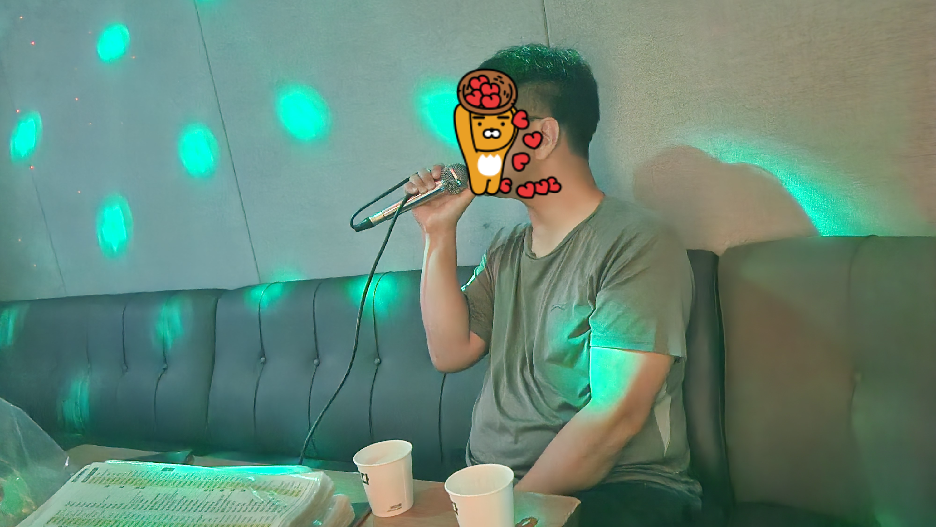 조명이 반짝이는 방 안에서 마이크를 잡으니, 마치 학창 시절 MT 온 것 같았어요.